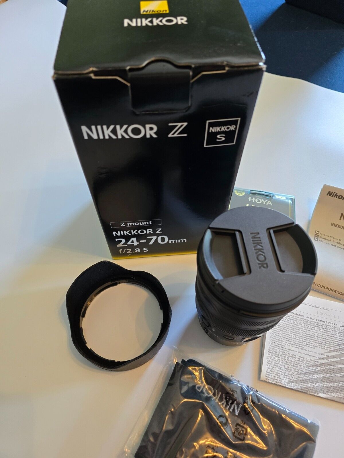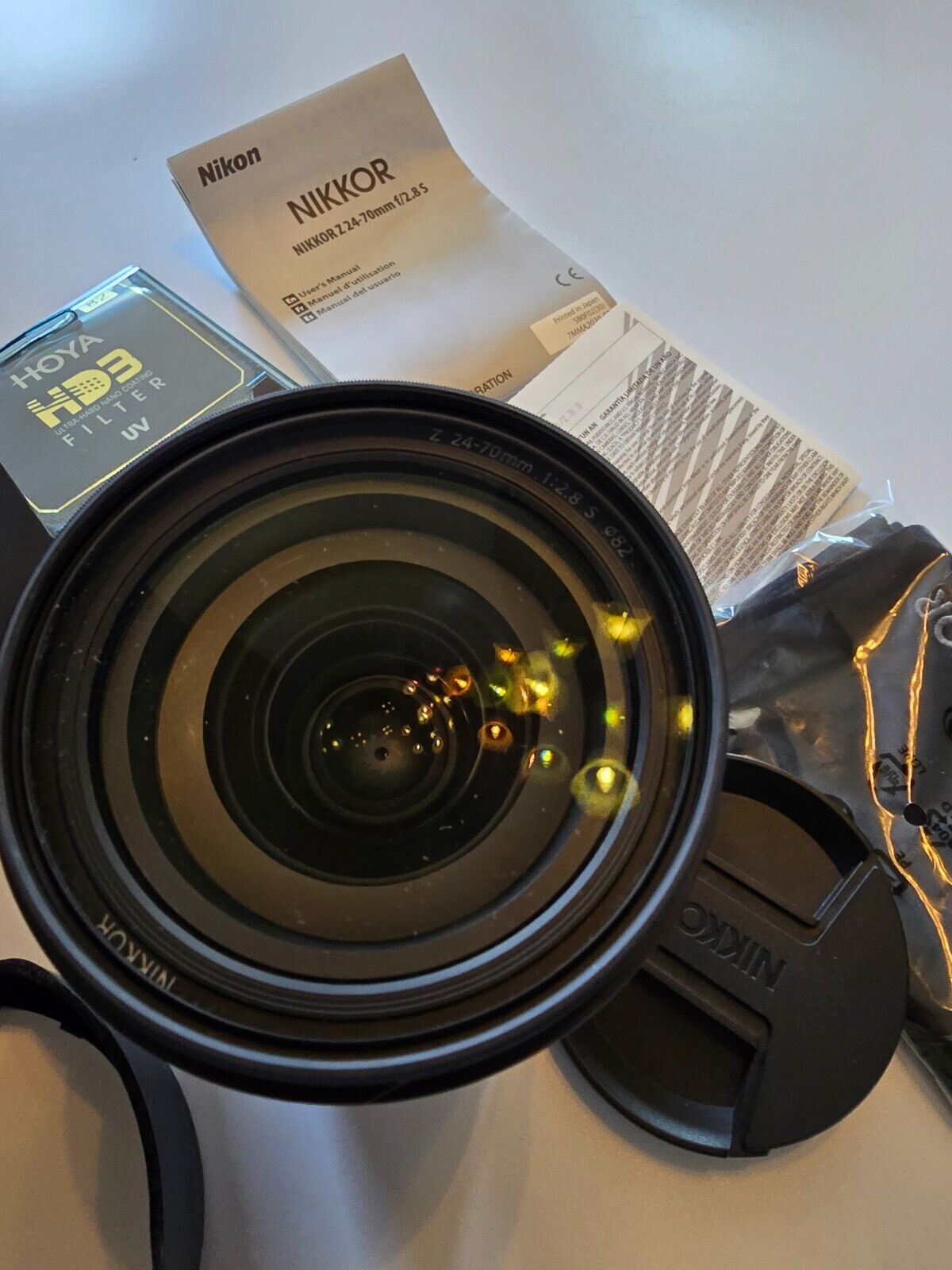 Nikon NIKKOR Z 24-70mm f/2.8 S Standard Camera Lens for Z mount Camera, very low usage, (mostly used 50mm lens) in brand new condition with original items, installed Hoya HD3 UV Filter from day One.